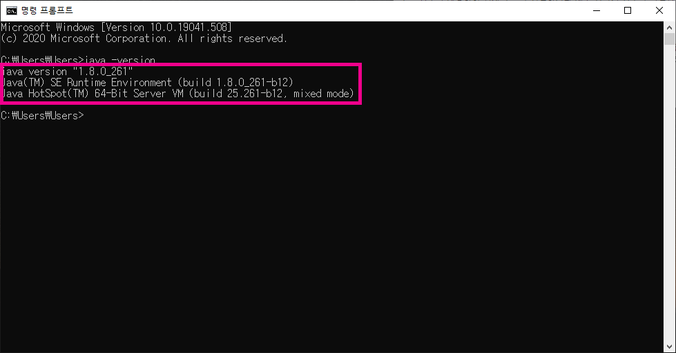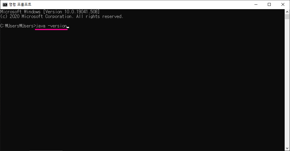 위와 같이 자바 버전이 나오지 않는다면 재설치 필요